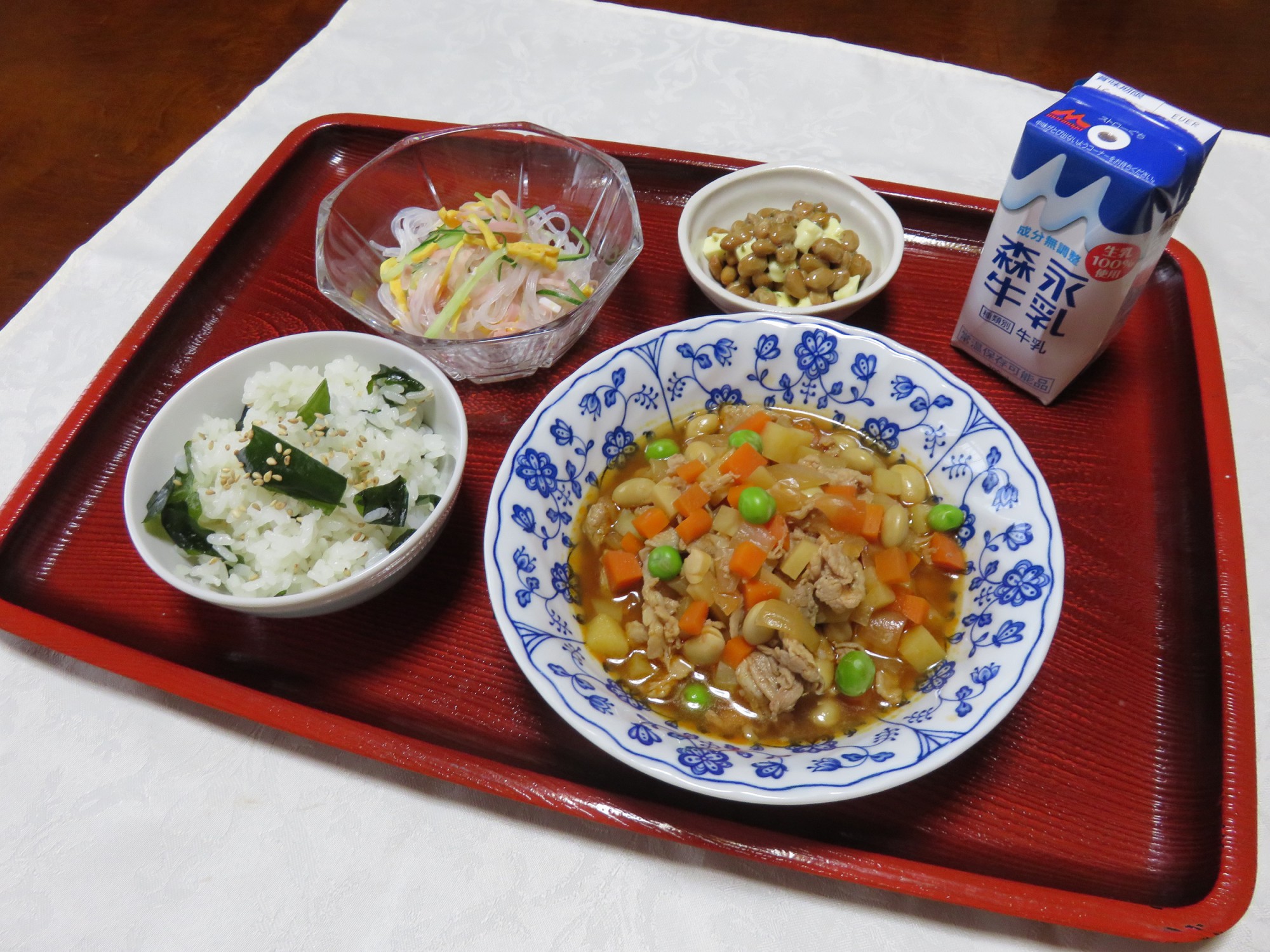 春雨サラダ 牛乳(コーヒー牛乳の素付き)