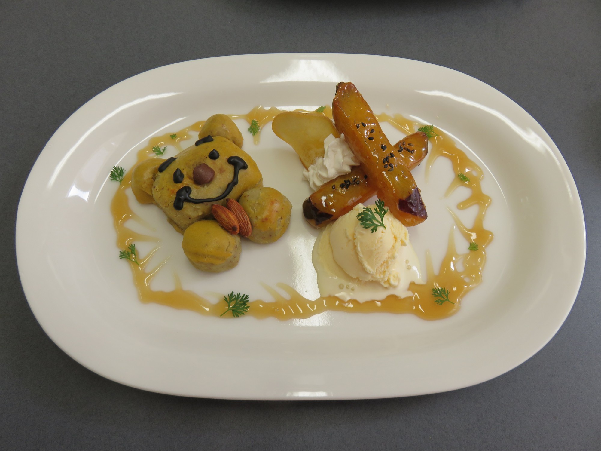 上品な甘さで人気の安納芋を使い、みなさんの好きな形で(写真はクマです。)スイーツプレートに!